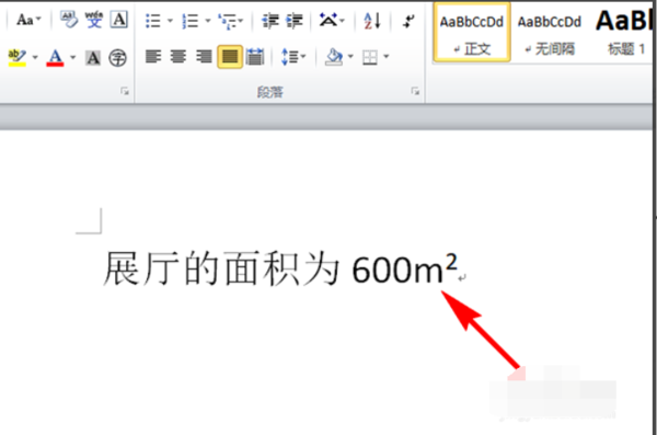 1、以Word2010版本为例,在文档中输入了平方米的单位,但是数字2不在上方;