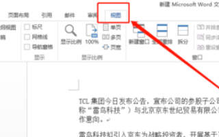 2、打开了之后,在文档的工具栏上方找到视图,然后点击它。