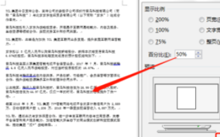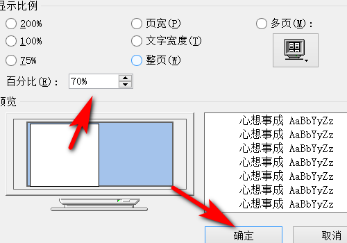4、此时在弹出的窗口中找百分比这个设置,将百分比改小一些,点击确定,这样就可以将二页的东西缩小改成一页。