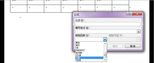 ①将插入点置于存放运算结果的单元格中,“表格”→“公式…”,弹出“公式”对话框。