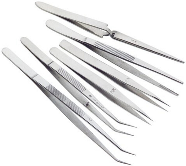 当启动打印任务时,镊子需要时刻准备好放到手边。这是因为,在3D打印机开始打印前,挤出喷头中常常会渗出一些被融化的耗材,它们融化后会粘在喷嘴上,这时最好用镊子(如果用手会被烫伤)把这部分去除掉。此外,在3D打印机出现堵料时,还可以用镊子将卡在打印头里面的断料夹出。