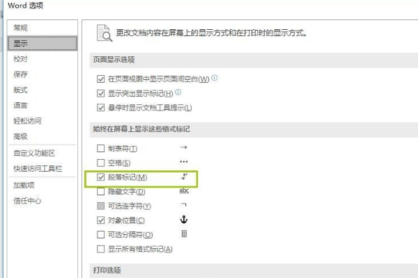 4、在显示选项中,找到“显示段落标记”项,选择或取消,即可进行段落标记的隐藏和显示。