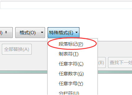 3、在弹出来的对话框中,点击“特殊格式”中的“段落标记”。