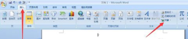 2. 点击工具栏上的“插入”的按钮,找到"对象"按钮