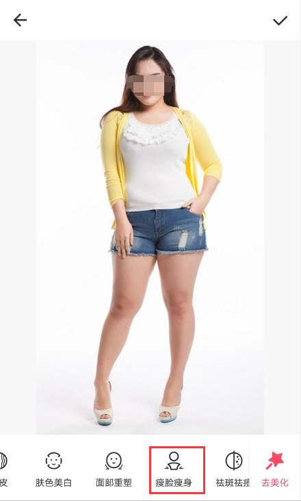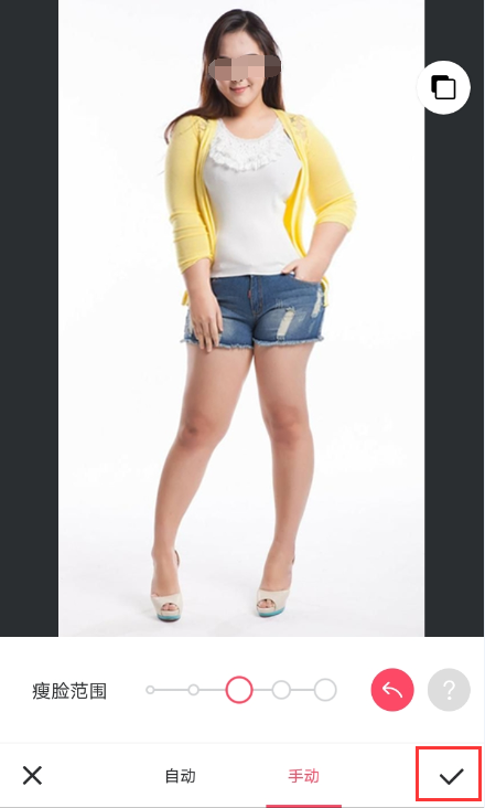 五、瘦身操作完成之后点击屏幕右下角的“对勾”完成此步操作。