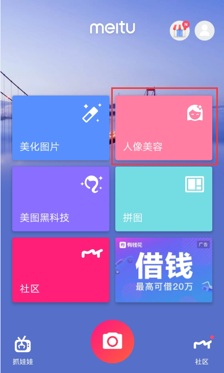 一、首先打开手机美图秀秀,然后点击“人像美容”。