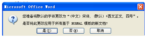 3、弹出提示框,这样即可更改NOEMAL模板,以后新建文档,默认为宋体。