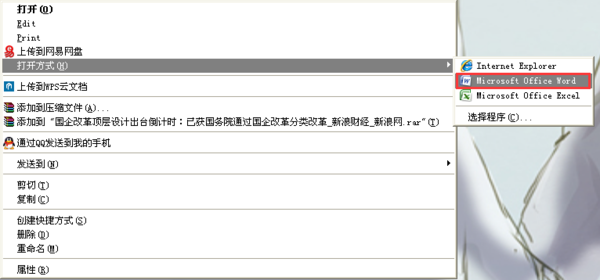 4、新建一个WORD文档,从WORD文档内打开文件