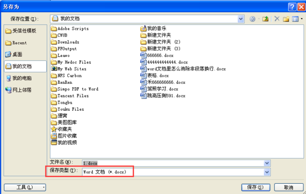 5、我们在另存为里选择word格式文档进行保存。