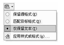 2、点击右边的三角形,在菜单中选择“仅保留文本”,这时网页上讨厌的格式就都不见了,还可以把网页中的图标和图片去掉,这样就完成了拷贝任务。粘贴后没有看到“粘贴选项”按钮,只要在“工具→选项→编辑”下,勾选“显示粘贴选项按钮”即可;
