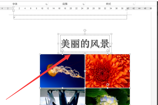 1、打开电脑,然后打开准备好的word文档,插入图片素材和艺术字标题,调整好图片位置;