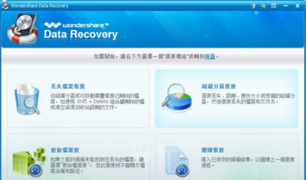 3.Wondershare Data Recovery:是来自国外的一款专家级数据恢复软件,算法精湛、功能强大,支持多种情况下的文件丢失、分区丢失恢复。