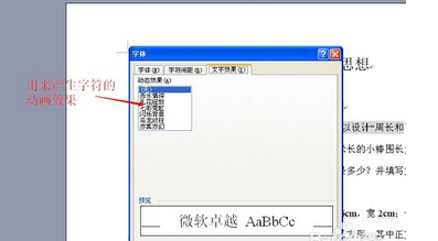 4. 文字效果选项下可以用来产生字符的动画效果