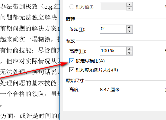 6、在弹出的对话框中取消勾选“锁定纵横比”按钮。