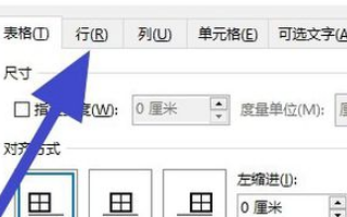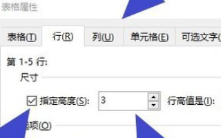 2、在表格属性对话框,选择“行”选项卡,勾选“指定高度”,调整满意的高度值,行高值是“固定值”。