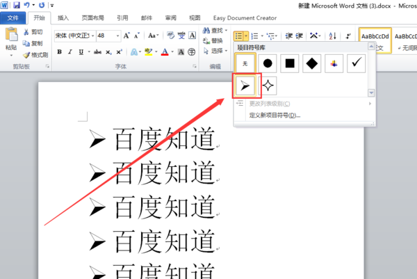 3、此时指定的符号将添加到了项目符号库列表中,选择该符号即可将其应用到段落中,如图4所示。