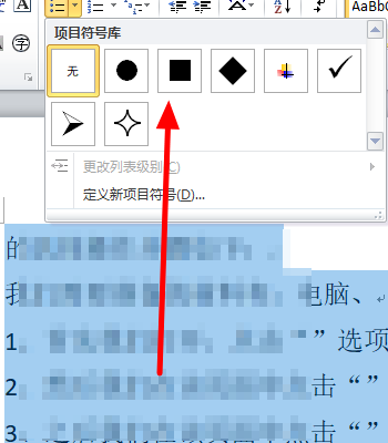 3.这里就可以选择一些系统已有的内容。也可以点击【定义新项目符号】进行自定义符号图案;