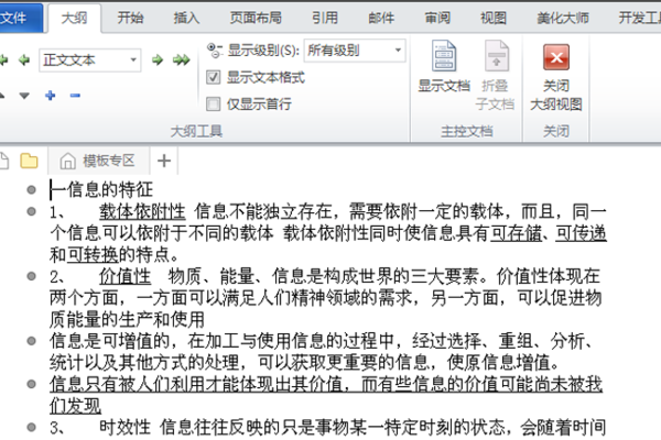 三、然后,在文档中依次选择需要拆分的文件标题,并且设置大纲级别为1级。