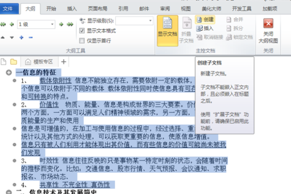 四、然后,选择需要拆分的标题前面的“+”,点击“显示文档”,选择“创建”。