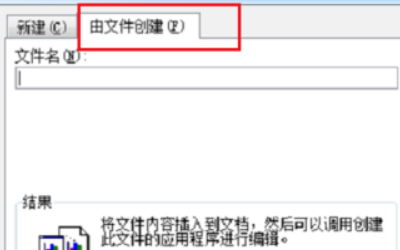 3、第三步到对象界面后,默认为new,单击按文件创建,单击Browse,选择要插入的word文件。