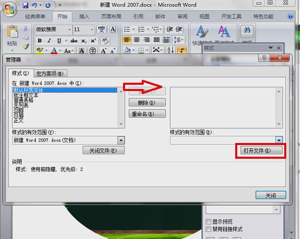 5、接着在对话框里面点击打开文件,找到需要导入的模板样式导入到文档里面就可以了,这样就可以将一个word的格式应用到另一个word文档里面。