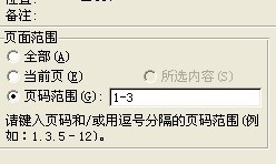 6、下面还有页码范围的选项,在前面选中之后要在后面的输入框中填入你想打印的页面范围,比如:1-2或者1,2。