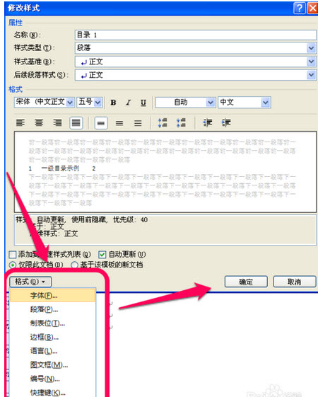 word 目录 格式如何调整