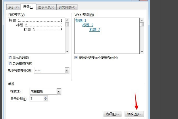 4、进入窗口中点击一个标题级别,点击“修改”。