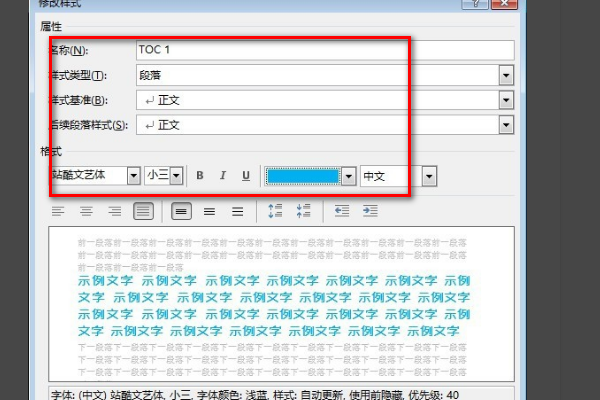 Word文档目录的字体格式设置