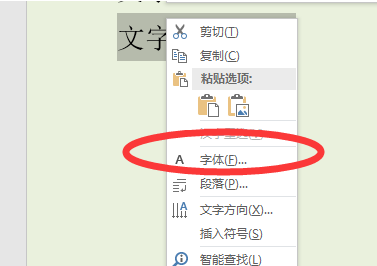 3、或者选中文字后右键点击文字内容,在弹出的选项中选择“字体”选项。