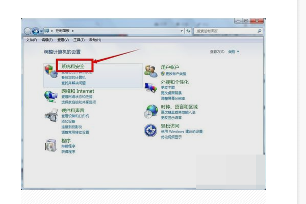 2、在控制面板页面选择系统和安全选项,如下图所示