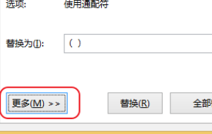 中括号及其包含的内容是应该首先删掉的。按下“Ctrl+F”快捷键,打开“查找和替换”对话框。点击“替换”选项卡,在“查找内容”的输入框中输入“\[*\]”(不包括外层双引号),点击“高级”按钮,选中“使用通配符”复选项(如图2)。 “替换为”输入框中不输入任何内容。需要注意的是输入框中输入的内容均应为英文半角状态。