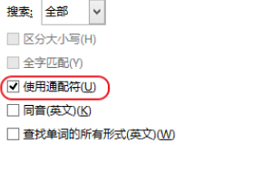 3、点“高级”——搜索选项——勾选“使用通配符”——全部替换。