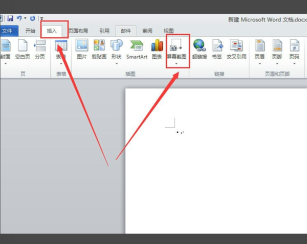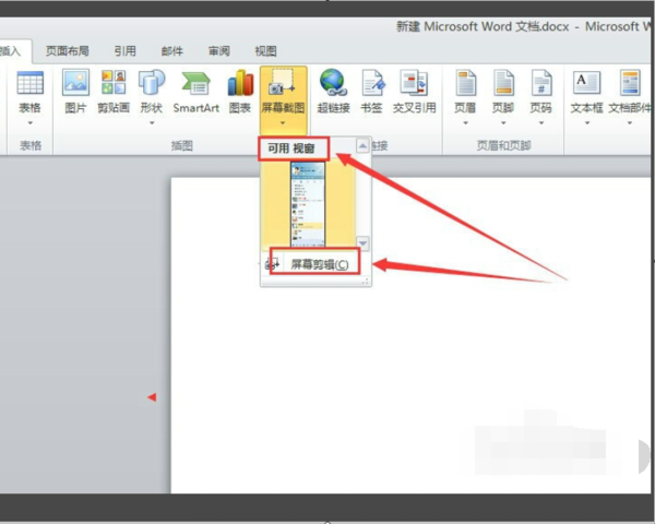 在插图选项组单击屏幕截图,出来的窗口单击最下面的“屏幕剪辑”。