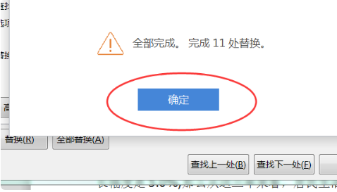 再回到替换对话框中,点击“全部替换”即可完成上述要求。