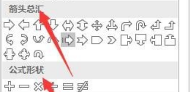 5、点击插入箭头、公式形状和流程图。接着在这里选择插入一些基本的形状,能看到这些形状都是非常好用的,根据自己实际的需要进行设计,也是非常好的。