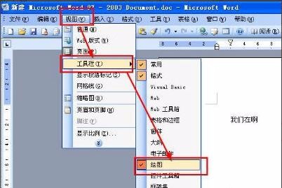 首先打开word文档,如图,打开视图菜单工具栏,然后勾选工具栏中的“绘图”工具。