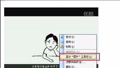 但是还有一种情况就是点击图片后没反应,没有绘图工具出来,那么就是绘图工具显示了,让绘图工具显示方法很简单。如图,右键图片,选择显示图片工具栏就可以了。