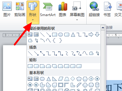3、然后我们在弹出来的窗口中点击打开“形状”下方的倒三角形即可看到了。