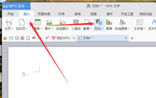 2、在 WPS 文本编辑区域中, 打开 "插入" 菜单选项卡, 然后单击 "形状选项" 按钮。