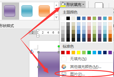 4、选择一个图形,点击“形状填充”中的“图片”。