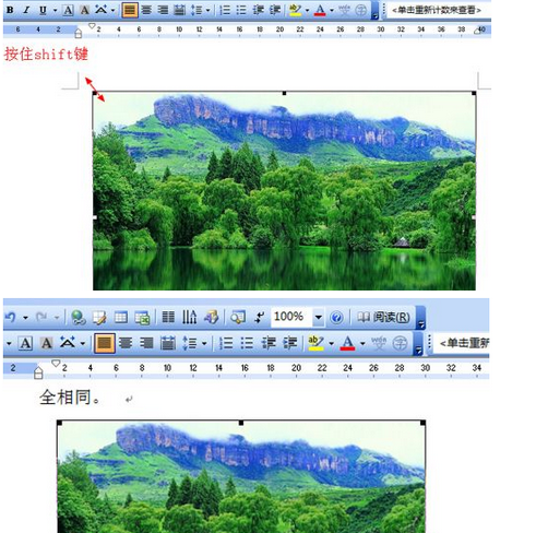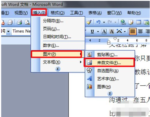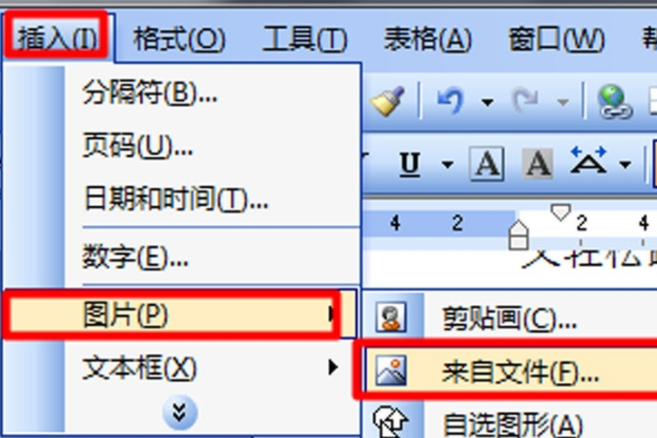 1、打开要编辑的word文档,选择[插入] - [图片] - [从文件],选择要插入的图像,系统将自动导入图像,然后调整图像大小(按住四个移位图像的角落)调整箭头以使调整后的图像不会失真并按比例缩放。