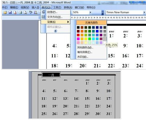 在word中如何制作日历表