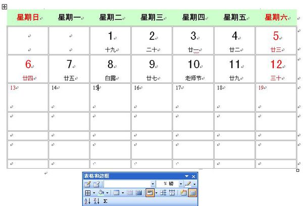 用word制作日历,可以使用画表格的方法。