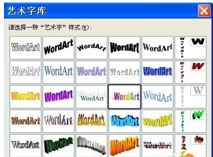 9.插入艺术字体。单击“插入〉图片〉艺术字”,弹出“艺术字库”对话框,选择想要的样式后,单击“确定”按钮。