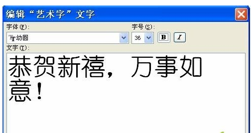 10.弹出“编辑‘艺术字’文字”对话框,输入祝福语,并设置好字体和字号,然后单击“确定”按钮。