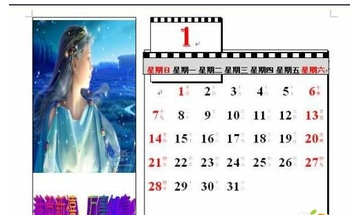 13.将右侧日历中的月份/“星期日/六”和元旦设置为红色,最终效果如图。其余月份设置如上,不在赘述。可以在其他月份中,插入家人的照片或者自己喜欢的图片。