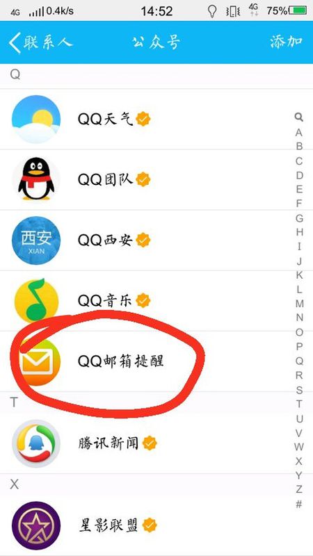 4、在公众号页面点击QQ邮箱提醒,进入QQ邮箱提醒页面。