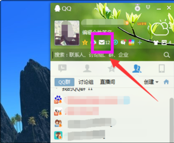 3、然后,我们需要在我们的电脑上登录QQ,点击QQ主面板上面的“邮箱”图标。
