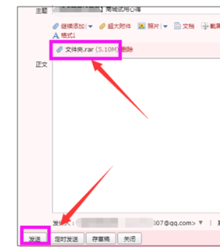 压缩包就被添加到了邮件中,点击发送按钮进行发送;